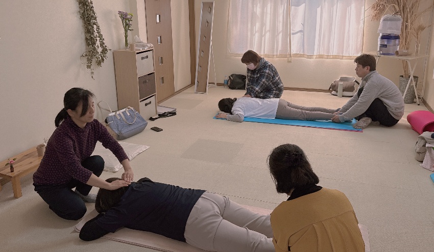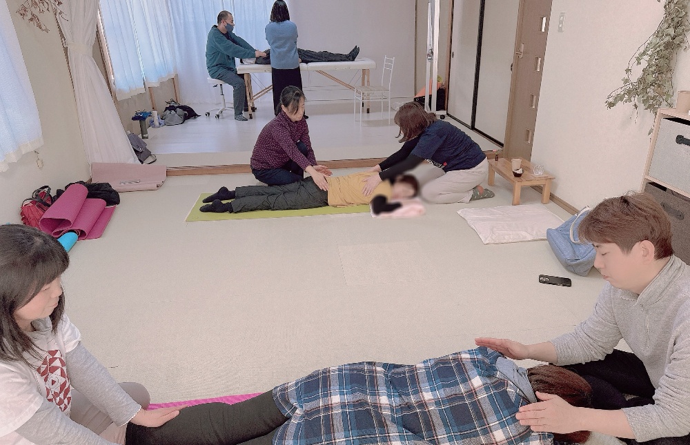 基本の手の当て方から、対面ヒーリングの練習、応用まで、ゆっくり丁寧に行っています。